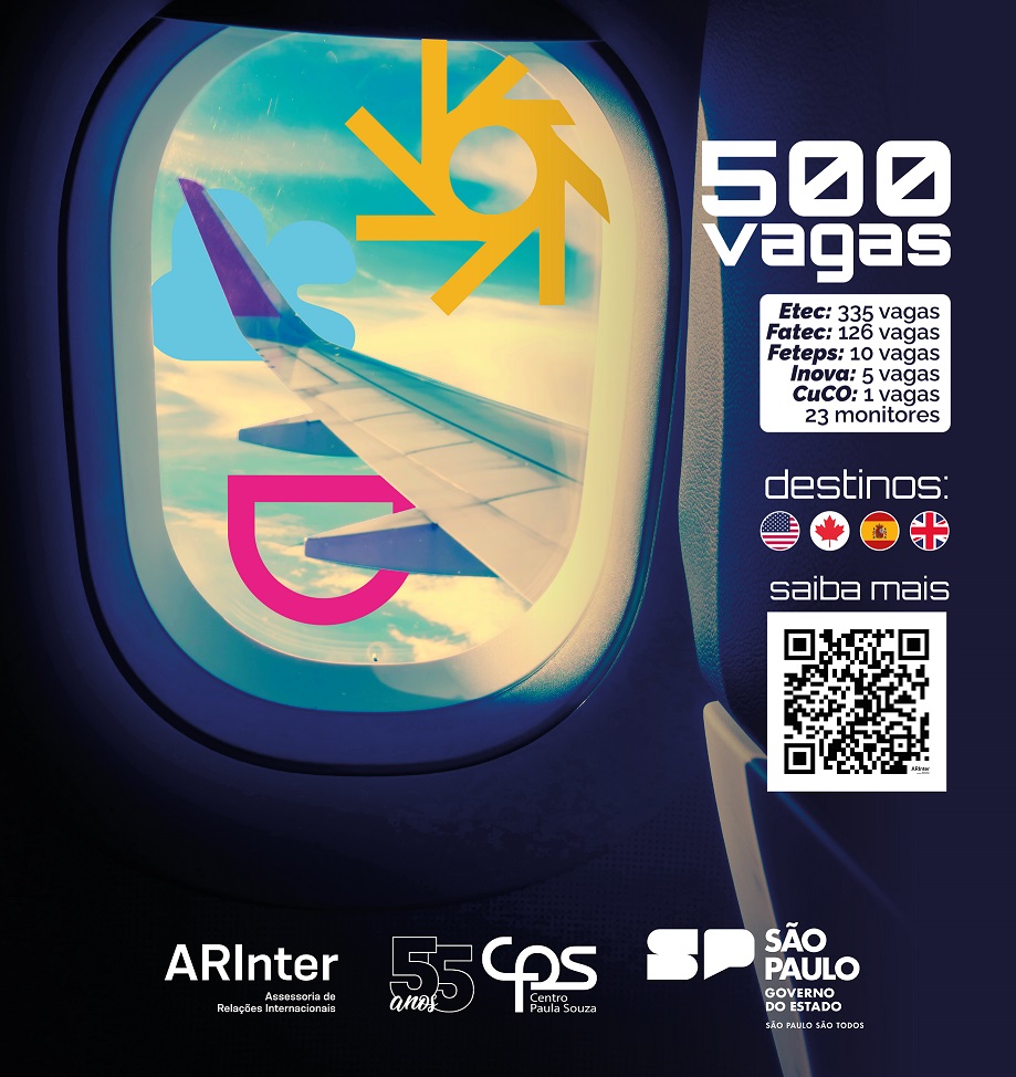 A Assessoria de Relações Internacionais – ARInter – tem o prazer de anunciar a abertura das inscrições para o Intercâmbio Cultural 2025, uma excelente oportunidade de desenvolvimento intercultural e vivência internacional para os estudantes de Etecs e Fatecs.